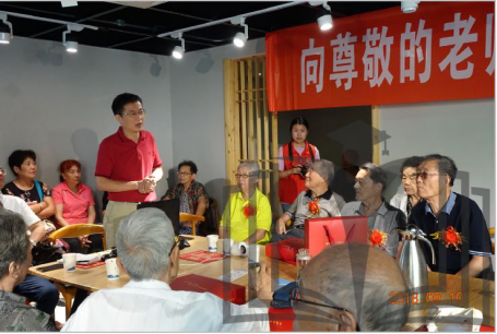 老校友们均已处于古稀之年,仍不忘师恩。八名80开外的老教师精神依然矍铄,享受着师生相见的欢乐和感动。校友总会副会长兼秘书长张真、苏州校友会会长杨辉、苏州老年校友会会长金红贤一起为八名老教师佩戴大红花,吴健荣与苏州校友会副秘书长张厚斌一道向老教师们颁赠礼品,恭祝老师们节日快乐、幸福安康,全场响起一阵阵热烈的掌声。