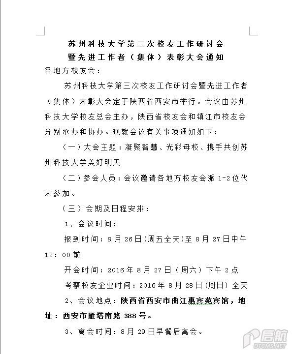 苏州科技大学第三次校友工作研讨会暨先进工作者(集体)表彰大会通知